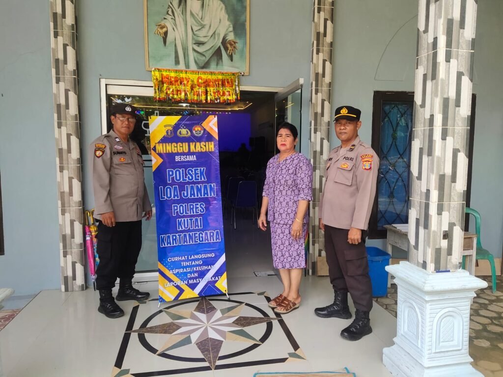 Kukar – Polsek Loa Janan dalam rutinitasnya setiap Minggu melaksanakan pengamanan ibadah di Gereja, juga melaksanakan Minggu Curhat / Minggu Kasih.