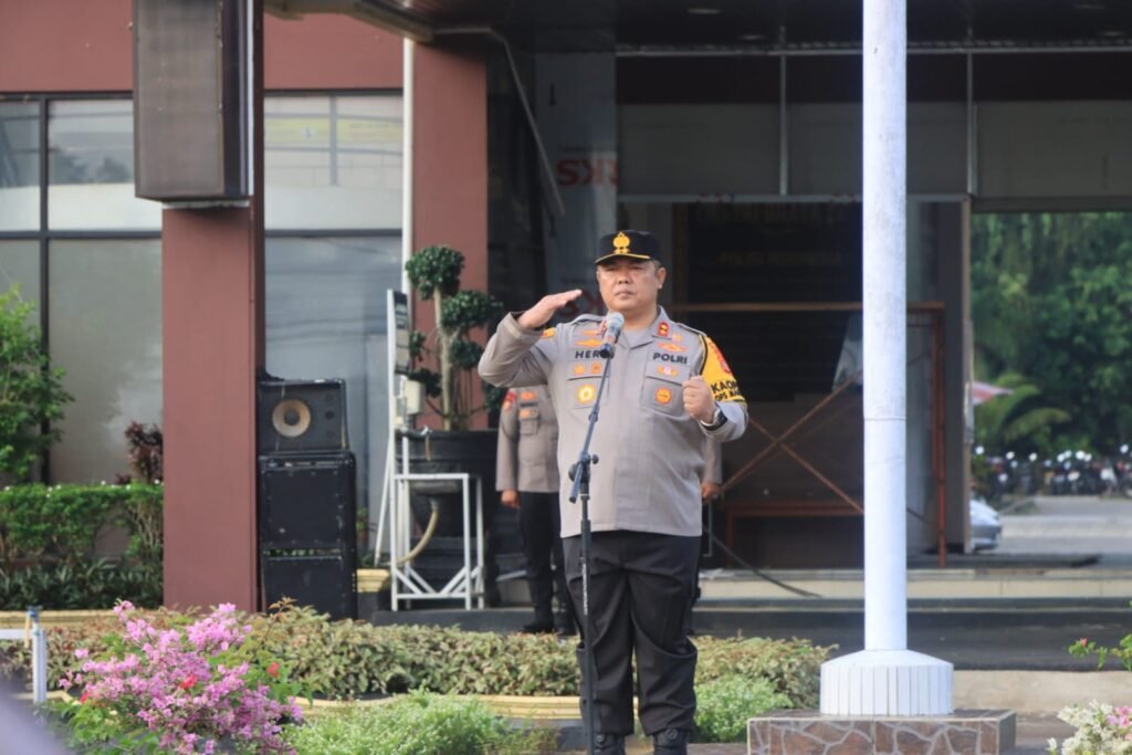 Kukar – Kapolres Kutai Kartanegara AKBP Heri Rusyaman pimpin Apel senin Jam Pimpinanyang dilaksanakan rutin dihalaman depan Mapolres.