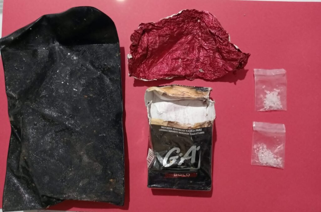 Setelah diamankan, petugas melakukan penggeledahan dan ditemukan barang bukti berupa 2 poket narkotika jenis sabu.