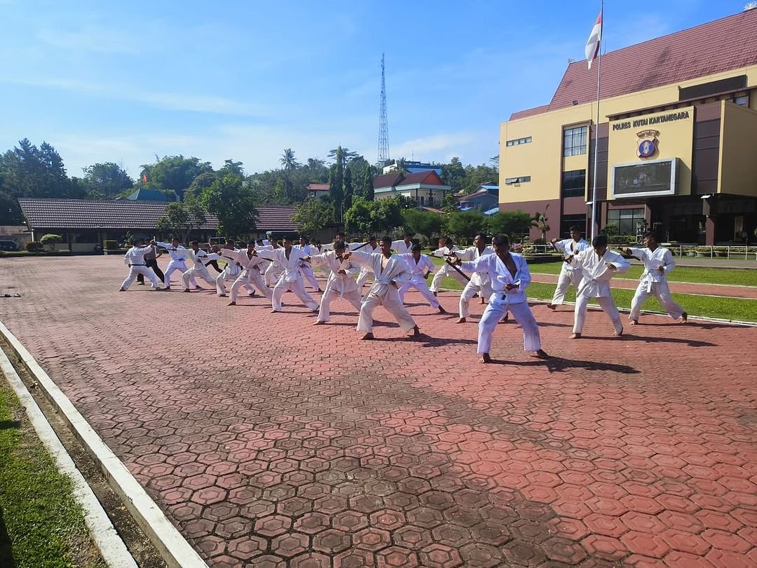 Kukar – Personel Sat Samapta Polres Kutai Kartanegara melaksanakan Latihan beladiri Polri guna mengasah dan meningkatkan kemampuan di halaman depan Mapolres, Rabu (31/1/2023).