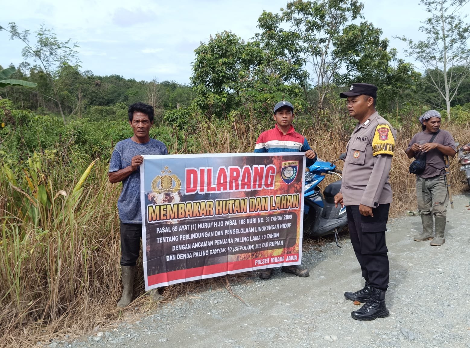 Dalam kegiatan tersebut Bhabinkamtibmas memberikan himbauan kepada warga, agar jangan melakukan pembakaran hutan dan lahan, dan bersama-sama dengan warga membentangkan spanduk “Di Larang Membakar Hutan Dan Lahan”.
