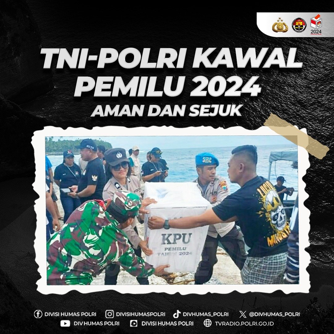 Potret sinergi TNI-Polri Kawal Demokrasi Bersama dalam mengawal pendistribusian logistik Pemilu 2024 di Pulau Miangas, Sulawesi Utara, yakni pulau ujung utara Republik Indonesia.