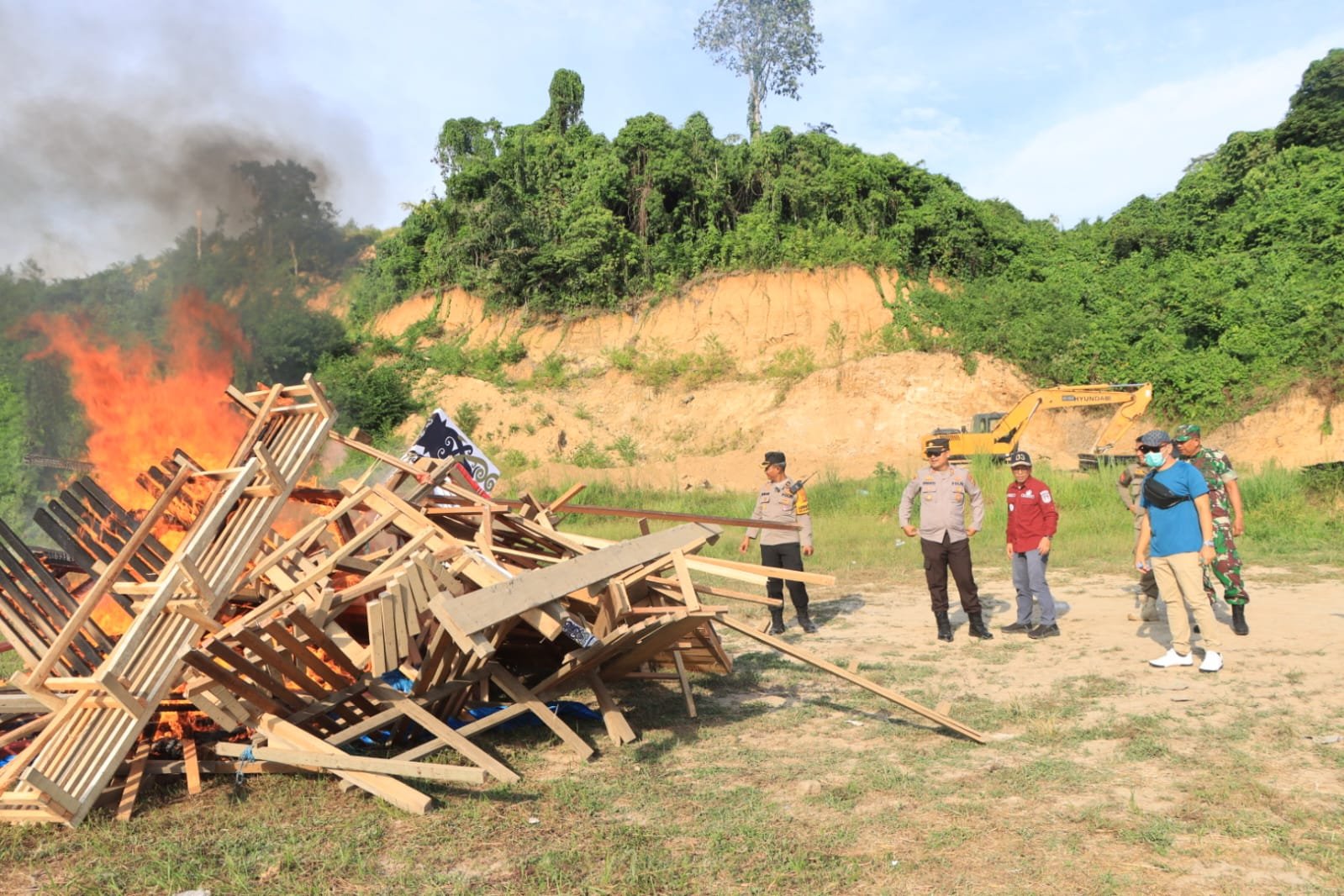 Bertindak cepat, Polres Kutai Kartanegara bersama tim gabungan yang terdiri dari Polsek Loa Janan, Koramil Loa Janan, Satpol PP serta Denpom VI/1 Samarinda mendatangi lokasi dimaksud dengan tujuan merobohkan tempat yang diduga arena perjudian tersebut Jumat (23/2/2024) sore.