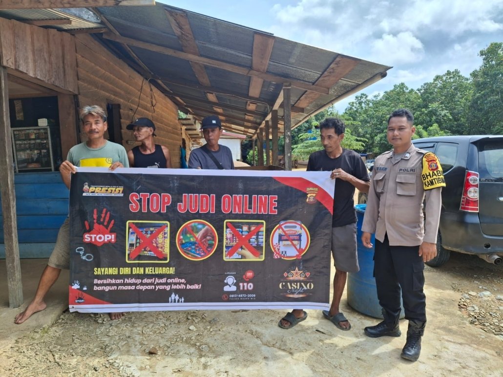 Kukar – Polsek Muara Wis melaksanakan kegiatan himbauan Stop Narkoba dan judol di Desa Lebak Mantan, Kecamatan Muara Wis, Kabupaten Kutai Kartanegara, pada Kamis (2/1).