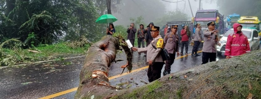 “Pukul 10.30 WIB kendaraan sudah bisa melintas karena evakuasi pohon tumbang dilakukan dengan cepat dan menggunakan bantuan unit mesin Sinswo,” ujar Kapolres.