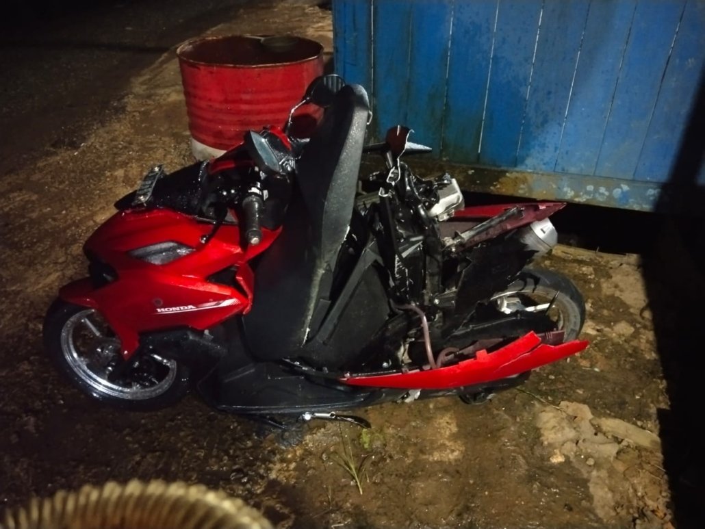Sepeda motor Honda Vario 160 merah KT-2771-XB plat dasar sementara yang dikendarai oleh Muhammad Nurfirdaus, 18 tahun, dan mobil Pick up Suzuki Carry warna hitam KT-8421-OS Plat dasar Hitam yang dikemudikan oleh Usaman Marzukqi, 38 tahun.