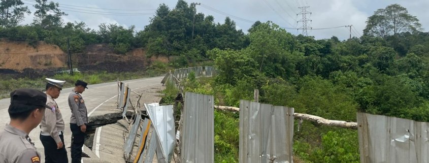 Kukar – Pada Kamis (30/1) kemarin, Polsek Muara Jawa melaksanakan kegiatan pengecekan patahan ruas badan jalan di Jl. PU Muara Jawa Sanga Sanga RT. 10 Kel. Muara Kembang.