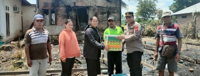 Kukar – Kapolsek Tenggarong Seberang, IPTU Raymond Juliano William bersama stafnya melakukan kegiatan pemberian santunan kepada warga yang mengalami musibah kebakaran di Desa Karang Tunggal, Kecamatan Tenggarong Seberang, Rabu (5/2).