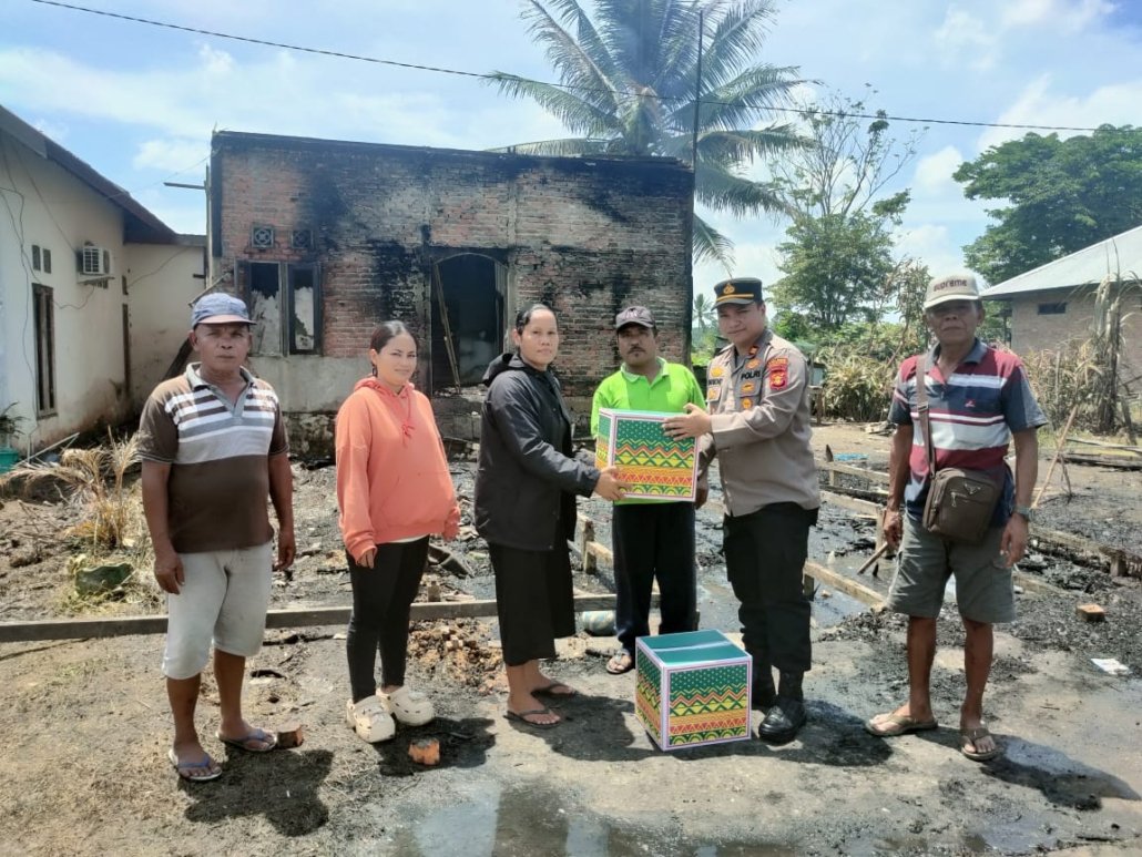 Kukar – Kapolsek Tenggarong Seberang, IPTU Raymond Juliano William bersama stafnya melakukan kegiatan pemberian santunan kepada warga yang mengalami musibah kebakaran di Desa Karang Tunggal, Kecamatan Tenggarong Seberang, Rabu (5/2).