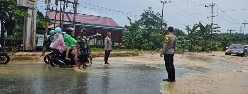 Sigap Bencana, Personil Polsek Samboja Hadir Berikan Pelayanan Di Tengah Banjir