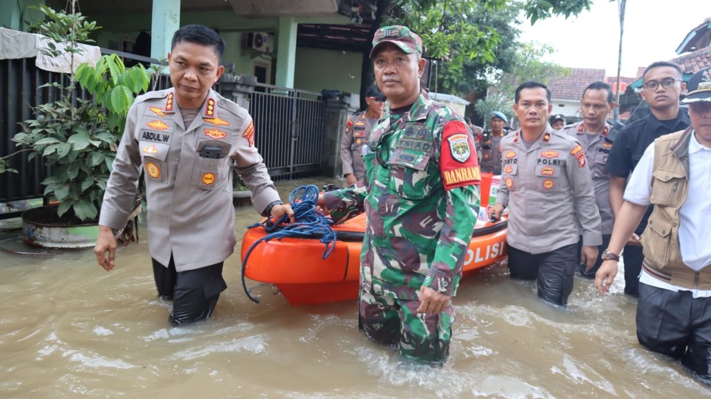 Kepolisian Negara Republik Indonesia melalui jajaran Polda Metro Jaya dan Polres setempat turun langsung membantu warga yang terdampak banjir di sejumlah wilayah di Bekasi dan Depok.