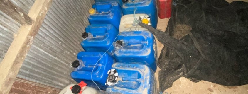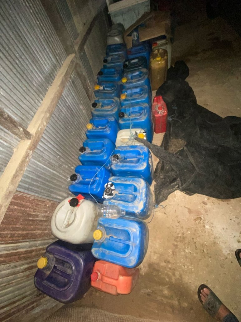 Barang bukti yang ditemukan adalah 17 jerigen BBM bersubsidi jenis Pertalite dengan kapasitas ± 35 liter, 2 jerigen BBM bersubsidi jenis Pertalite dengan kapasitas ± 20 liter, 2 jerigen BBM bersubsidi jenis Pertalite dengan kapasitas ± 5 liter, selang untuk menyedot BBM jenis Pertalite, dan 1 unit kendaraan mobil sedan merk Honda Civic LX dengan Nomor Polisi KT 1329 DK warna Hitam.