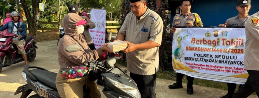 Kukar – Dalam rangka menyambut bulan suci Ramadhan 1446 Hijriah, Kepolisian Sektor Sebulu menggelar kegiatan positif dengan membagikan takjil gratis kepada masyarakat di wilayah hukumnya. Kegiatan ini dilaksanakan sebagai bentuk kepedulian dan kedekatan aparat kepolisian dengan warga, sekaligus menciptakan suasana kebersamaan dan keharmonisan di bulan yang penuh berkah ini, Senin (17/03/2025).
