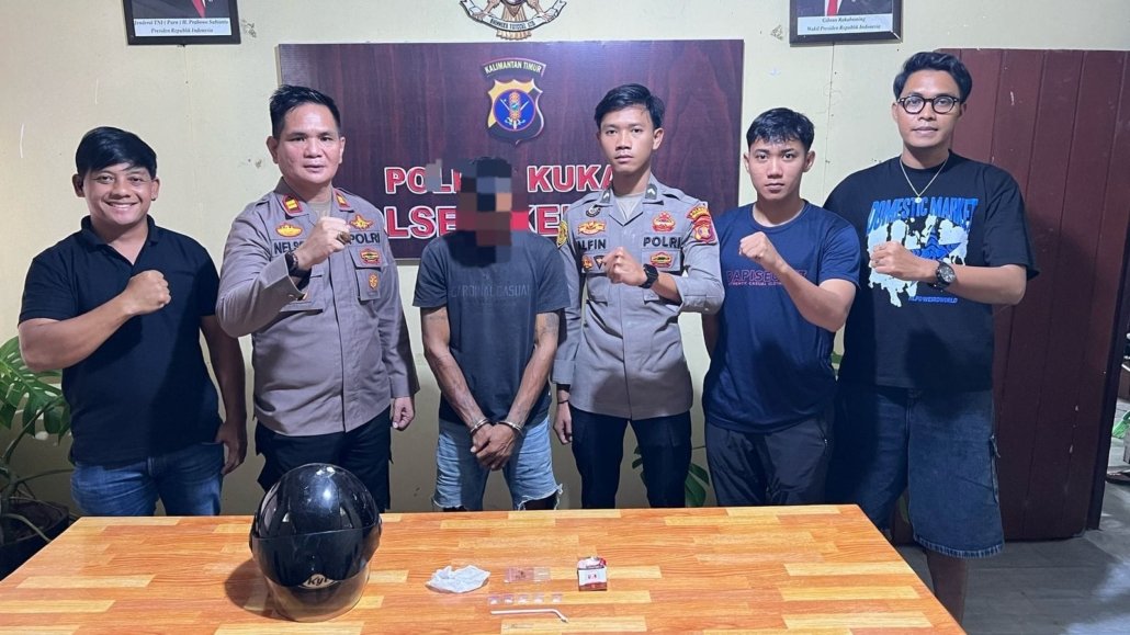 \”Tersangka diamankan di depan Rumah Makan Desa Tuana Tuha, RT 002, pada pukul 20.10 WITA. Pada saat penggeledahan, kami menemukan barang bukti berupa shabu di dalam helm KYT warna hitam milik tersangka,\” tambah Kapolsek Kenohan.
