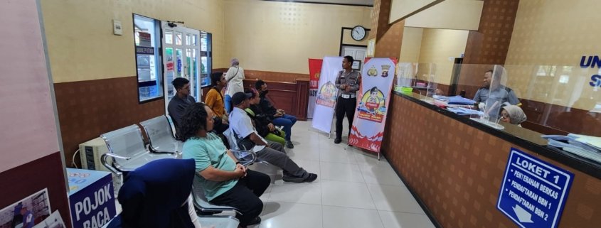 Kukar – Polres Kutai Kartanegara melalui Satuan Lalu Lintas (Satlantas) telah melaksanakan kegiatan sosialisasi menggunakan banner \”Mudik Aman Keluarga Nyaman\” dan \”Hotline Polri 110\” di Ruang Pelayanan BPKB Satlantas Polres Kutai Kartanegara, Kamis (27/3).