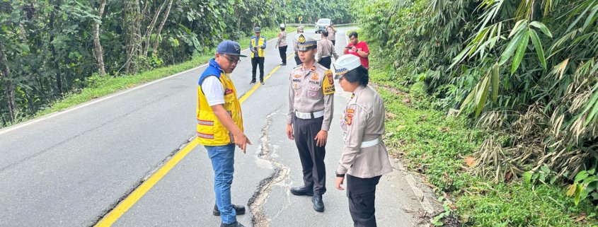Iptu Fandoli menerangkan setelah turun langsung meninjau bahwa kondisi jalan saat ini retak dan miring.