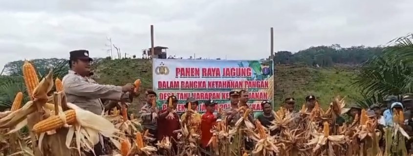 Kukar – Kapolsek Loa Janan, AKP Abdillah Dalimunthe, bersama Bhabinkamtibmas Desa Tani Harapan, Aipda Sudarsono, menghadiri kegiatan panen jagung yang dilaksanakan di RT 03 Dusun Harapan Sejahtera, Desa Tani Harapan, pada Jumat (25/4).