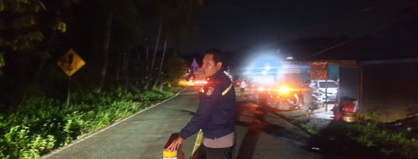 Kukar – Dalam upaya menjaga keselamatan dan kelancaran arus lalu lintas, Polsek Loa Janan bersama relawan melaksanakan kegiatan pemasangan barier dan traficon di titik rawan longsor di Jalan Soekarno Hatta Km 28, Dusun Tani Jaya, Desa Batuah, Kecamatan Loa Janan, pada Kamis malam (24/4/2025) mulai pukul 22.00 WITA hingga selesai.