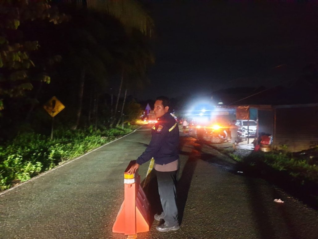 Tanggap Darurat! Polsek Loa Janan Pasang Barier Amankan Jalan Turun di Km 28 Soekarno Hatta