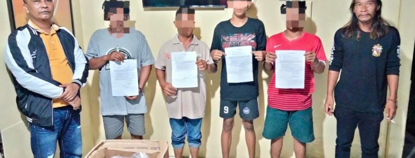 Setiba di TKP, petugas mendapati empat orang pelaku sedang duduk di tengah jalan sambil membawa kotak kardus yang disodorkan kepada pengemudi kendaraan yang melintas, dengan tujuan meminta sejumlah uang secara paksa. Aksi tersebut dinilai meresahkan masyarakat dan masuk dalam kategori pemerasan serta pungli.
