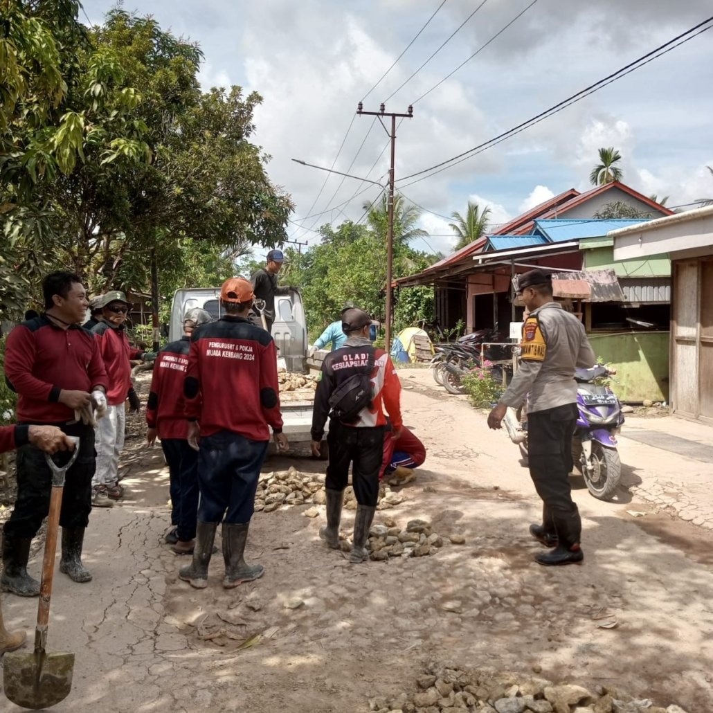 Dengan semangat kebersamaan, warga dan Bhabinkamtibmas bahu membahu menimbun batu di titik-titik jalan yang rusak. Kegiatan ini tidak hanya bertujuan memperbaiki infrastruktur, tetapi juga menjadi ajang mempererat hubungan antara aparat dan masyarakat.