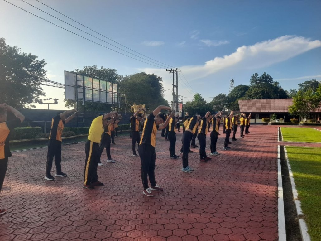 Usai pelaksanaan apel, kegiatan dilanjutkan dengan olahraga bersama di luar mako, dengan rute menyusuri tanjakan Bukit Biru, Jalan Pesut, Jalan Belida, dan kembali ke Mako. Personel yang memiliki kondisi fisik prima disarankan untuk melakukan lari, sementara yang lain mengikuti dengan berjalan santai, tetap mengutamakan keselamatan dan ketertiban lalu lintas.
