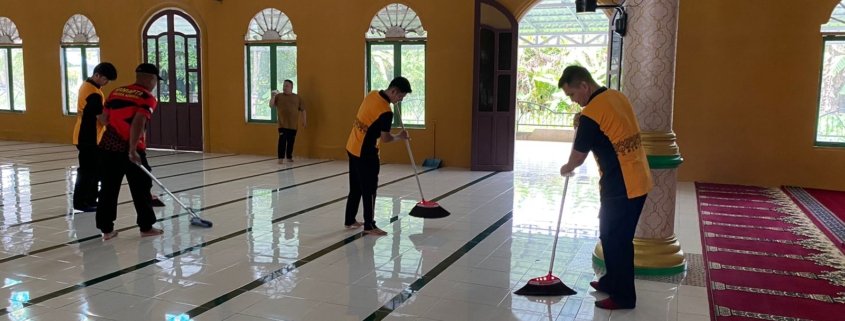 Adapun kegiatan yang dilakukan meliputi pembersihan dalam masjid, pengumpulan dan pembuangan sampah di sekitar masjid, serta membersihkan lingkungan sekitar tempat ibadah tersebut.