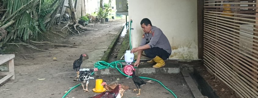 Kukar – Sebagai wujud nyata mendukung program ketahanan pangan, Kapolsek Kota Bangun AKP Ribut, melaksanakan kegiatan pemeliharaan ayam kampung yang berada di belakang Kantor Polsek Kota Bangun.