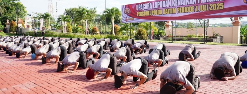 Tribratanews.kaltim.polri.go.id – Kepolisian Daerah Kalimantan Timur menggelar upacara kenaikan pangkat personel periode 1 Juli 2025 yang dipimpin langsung oleh Kapolda Kaltim Irjen Pol Endar Priantoro, S.H., S.I.K., C.F.E., M.H. Bertempat di Mapolda Kaltim, upacara ini diikuti oleh Wakapolda Kaltim Brigejn Pol Dr. H. M. Sabilul Alif, S.H., S.I.K., M.Si., para Pejabat Utama (PJU), serta seluruh personel yang menerima kenaikan pangkat.