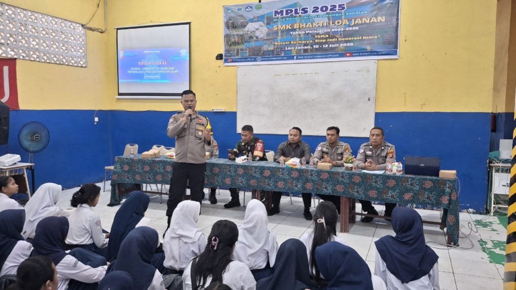 Kukar – Dalam rangka mendukung pembinaan karakter generasi muda sejak dini, Bhabinkamtibmas Polsek Loa Janan, Aipda Suwarno, hadir sebagai pemateri dalam kegiatan Masa Pengenalan Lingkungan Sekolah (MPLS) di SMK Bhakti Loa Janan, Kamis (10/07/2025). Kegiatan ini diikuti oleh seluruh siswa baru dan para guru.
