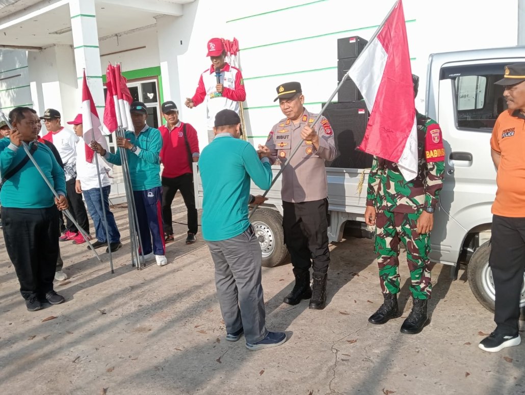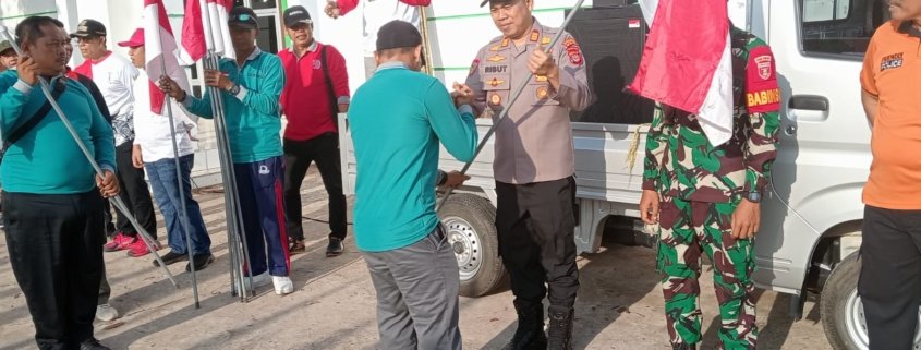 Kukar — Dalam rangka menyambut Hari Ulang Tahun (HUT) Kemerdekaan Republik Indonesia ke-80, Polsek Kota Bangun bersama pemerintah desa dan masyarakat menggelar kegiatan pemasangan 530 bendera Merah Putih secara serentak, Jumat (1/8/2025) pagi.