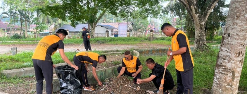 Kukar – Menjelang peringatan Hari Ulang Tahun ke-80 Kemerdekaan Republik Indonesia, jajaran Polsek Sangasanga bersama warga melaksanakan kerja bakti membersihkan Lapangan Palagan, Jumat (8/8/2025) pagi.