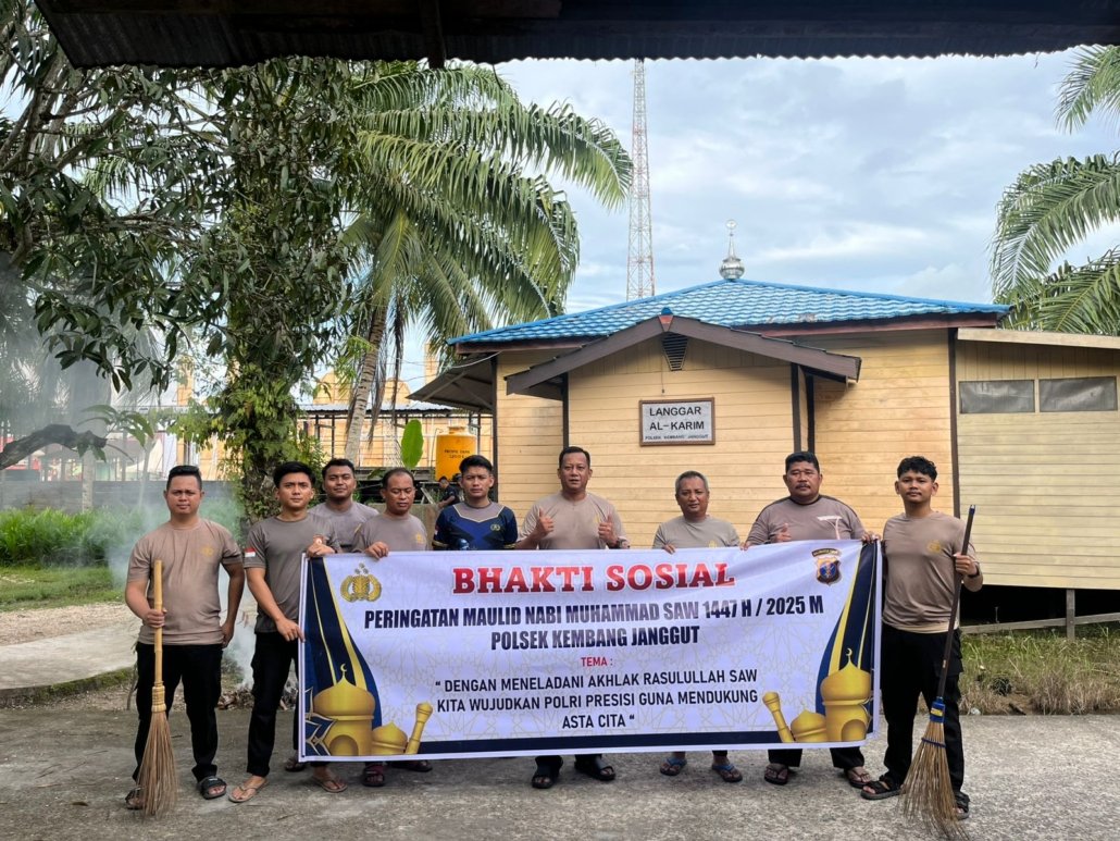 Kapolsek Kembang Janggut, AKP Dedi Supriyanto, memimpin langsung kegiatan gotong royong bersama anggota dan masyarakat di Langgar Al-Karim yang berada di halaman Polsek Kembang Janggut. Suasana kebersamaan dan semangat kebersihan terpancar dalam kegiatan ini, yang menjadi wujud nyata pengamalan nilai-nilai keteladanan Rasulullah SAW.