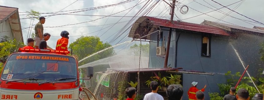 Kukar – Kebakaran menimpa sebuah rumah warga di Perumahan Tambak Rel, RT 11 Blok E2, Kelurahan Kampung Baru, Kecamatan Tenggarong, Minggu (7/9/2025) sekitar pukul 10.15 WITA. Api yang diduga berasal dari korsleting listrik di lampu hias ruang tamu menghanguskan plafon dan sebagian ruang tamu rumah milik Hata.