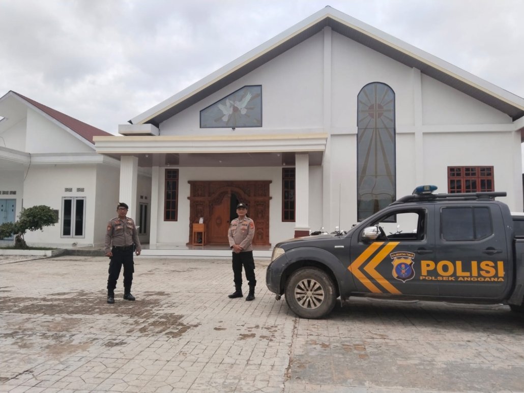 Kukar – Suasana khidmat mewarnai ibadah Minggu di sejumlah gereja di Kecamatan Anggana pada Minggu (7/9/2025) pagi. Kehadiran personel Polsek Anggana yang melaksanakan patroli dan pengamanan membuat jemaat dapat beribadah dengan tenang dan penuh kekhusyukan.