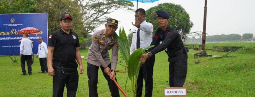 Sinergi Lintas Instansi, Polres Kukar Turut Lakukan Penanaman Pohon Kelapa di Pulau Kumala Dukung Ketahanan Pangan