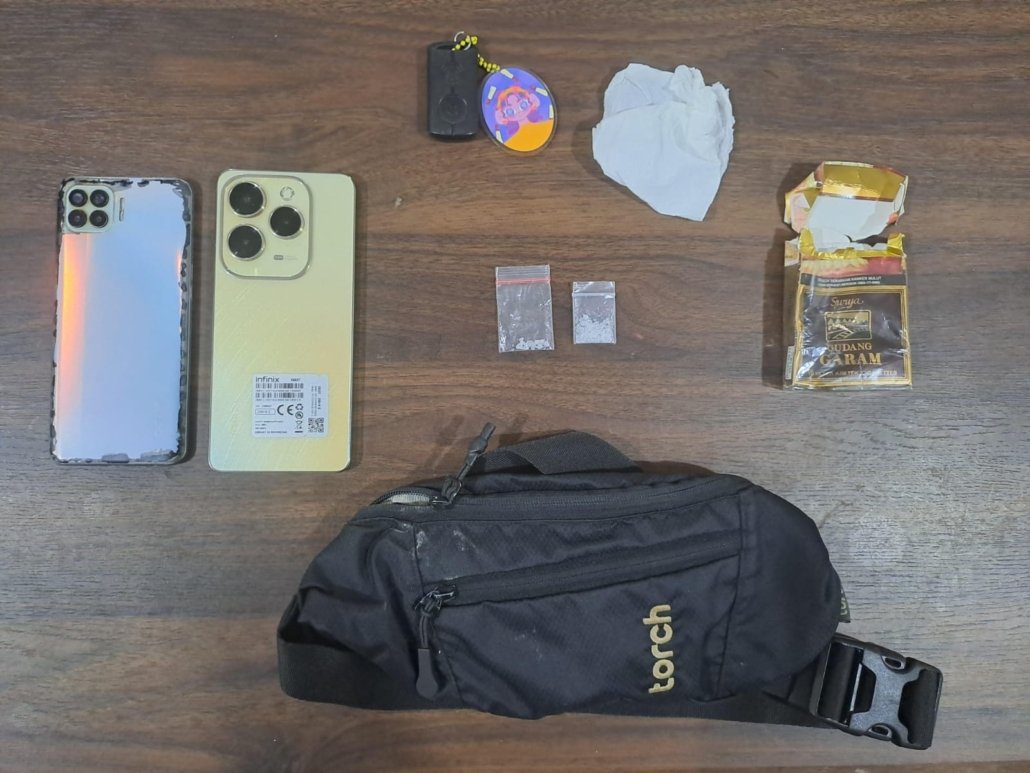 Sekitar pukul 03.30 WITA, polisi mendapati seorang pria keluar dari rumah tersebut. Saat diperiksa, ditemukan satu bungkus sabu seberat 0,32 gram di saku celananya. Pria itu mengaku yakni MH, yang kemudian langsung diamankan bersama barang bukti ponsel miliknya.