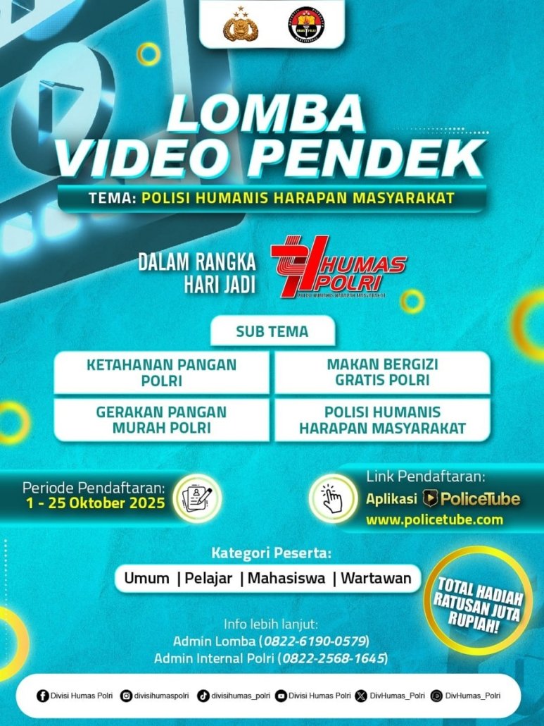 Dengan mengusung tema “Polri Humanis Harapan Masyarakat”, lomba ini diharapkan melahirkan karya-karya edukatif dan inspiratif yang menggambarkan peran Polri dalam memberikan pelayanan kepada masyarakat dengan pendekatan humanis.