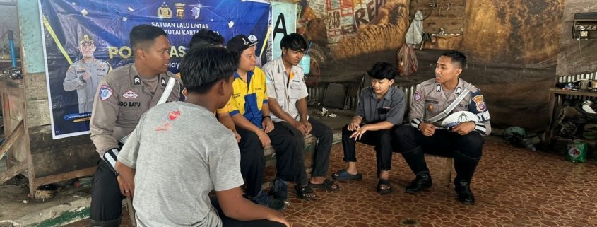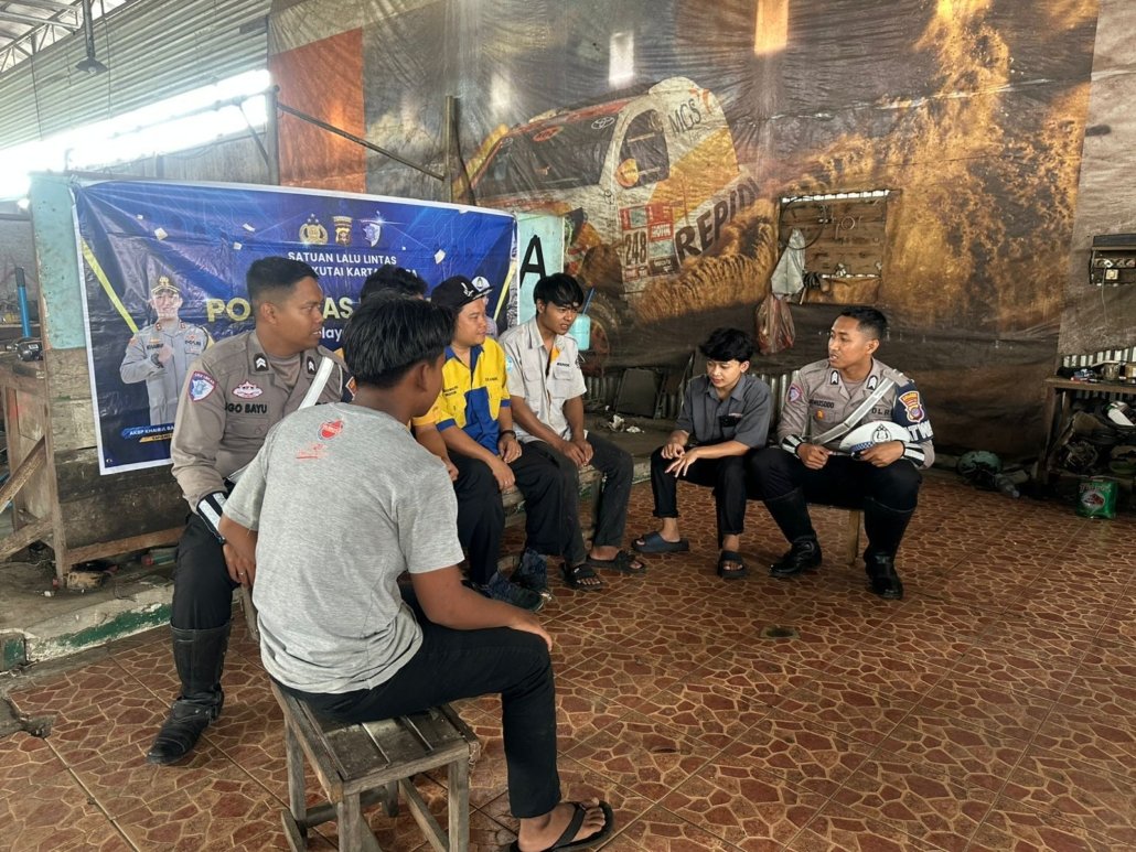 Satlantas Polres Kutai Kartanegara Sapa Karyawan Bengkel Sidomulyo, Ajak Tertib Berlalu Lintas dan Jaga Kamtibmas