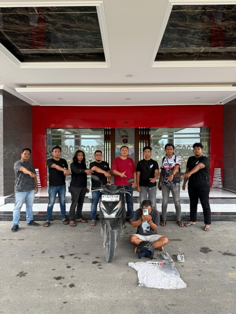 Tim segera melakukan penggerebekan dan mendapati pelaku sedang tertidur di dalam rumah. Tanpa perlawanan, pelaku diamankan beserta barang bukti berupa 1 unit motor Honda Beat KT 3423 CBK, 1 unit HP Infinix Hot 40 Pro, 1 buah helm hitam, 1 kaos abu-abu bertuliskan DAP BETON dan 1 pasang sepatu abu-abu.