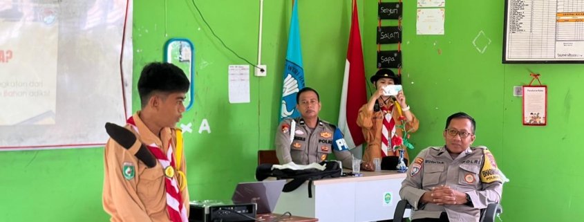 Materi yang diberikan meliputi pengertian dan sejarah Pramuka sebagai wadah pembinaan generasi muda, pemahaman dasar Peraturan Baris Berbaris (PBB), serta penjelasan komprehensif mengenai jenis-jenis narkoba dan dampak buruknya bagi kesehatan maupun masa depan generasi muda. Para siswa tampak antusias mengikuti sesi tersebut, terlebih ketika personel Polsek Tabang memberikan contoh kasus dan penjelasan mengenai konsekuensi hukum bagi penyalahguna maupun pengedar narkotika.