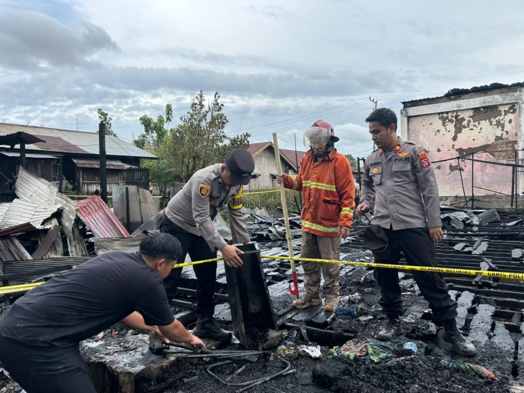Total bangunan yang terbakar meliputi 13 pintu sewaan dan 3 rumah milik warga setempat.
