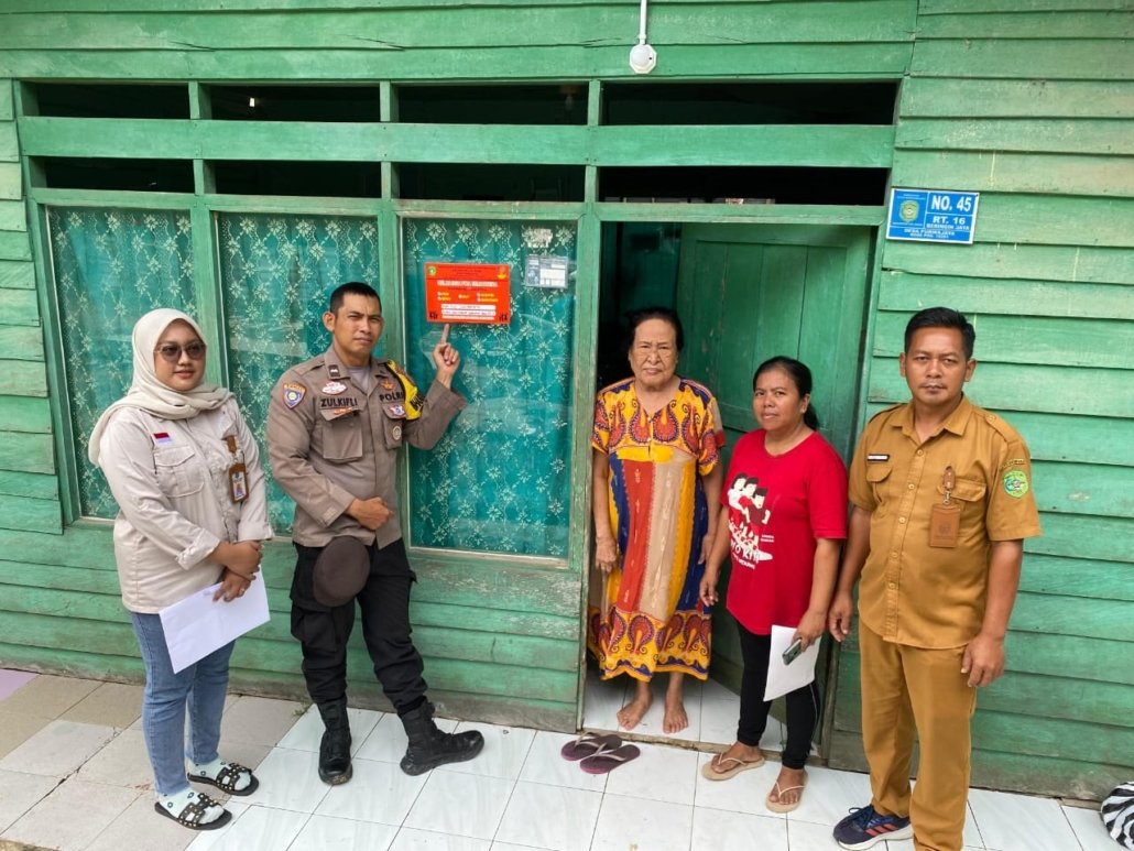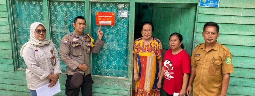 Kukar – Bhabinkamtibmas Desa Purwajaya, Polsek Loa Janan, Aipda Zulkipli, bersama perangkat Pemerintah Desa Purwajaya melaksanakan kegiatan pemasangan stiker rumah penerima bantuan pemerintah sebagai upaya mewujudkan penyaluran bantuan yang transparan dan tepat sasaran, Rabu (24/12/2025).