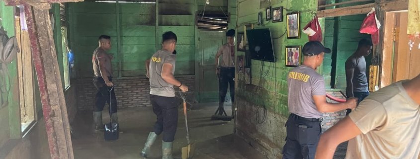 “Kegiatan gotong royong ini adalah wujud kepedulian dan tanggung jawab sosial kami kepada masyarakat. Kami ingin membantu meringankan beban warga agar rumah mereka bisa segera dibersihkan dan kembali layak dihuni,” ujar IPTU Yauwardi.