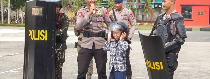 Dalam kesempatan tersebut, para siswa menerima pembekalan materi yang menitikberatkan pada wawasan bela negara, penanaman disiplin, serta penguatan karakter positif. Melalui penyampaian yang komunikatif dan edukatif, para instruktur mengenalkan pentingnya rasa cinta tanah air, kepatuhan terhadap aturan, serta dasar-dasar baris-berbaris guna melatih kedisiplinan dan kebersamaan. Anak-anak juga diperkenalkan dengan peran dan tugas Korps Brimob dalam bidang kemanusiaan dan pengamanan.