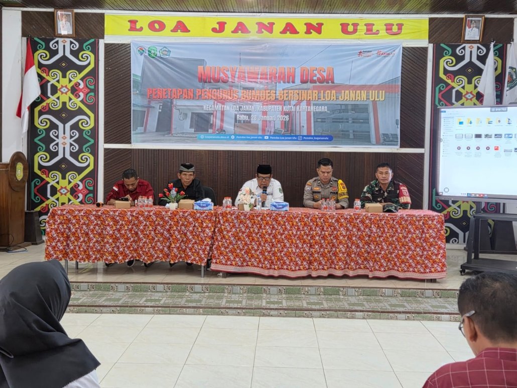 Kukar – Bhabinkamtibmas Desa Loa Janan Ulu Polsek Loa Janan, Aipda Suwarno, menghadiri kegiatan Musyawarah Desa (Musdes) dalam rangka penetapan pengurus Badan Usaha Milik Desa (BUMDes) yang digelar di Balai Desa Loa Janan Ulu, Kecamatan Loa Janan, Kabupaten Kutai Kartanegara, Kamis (29/1/2026).