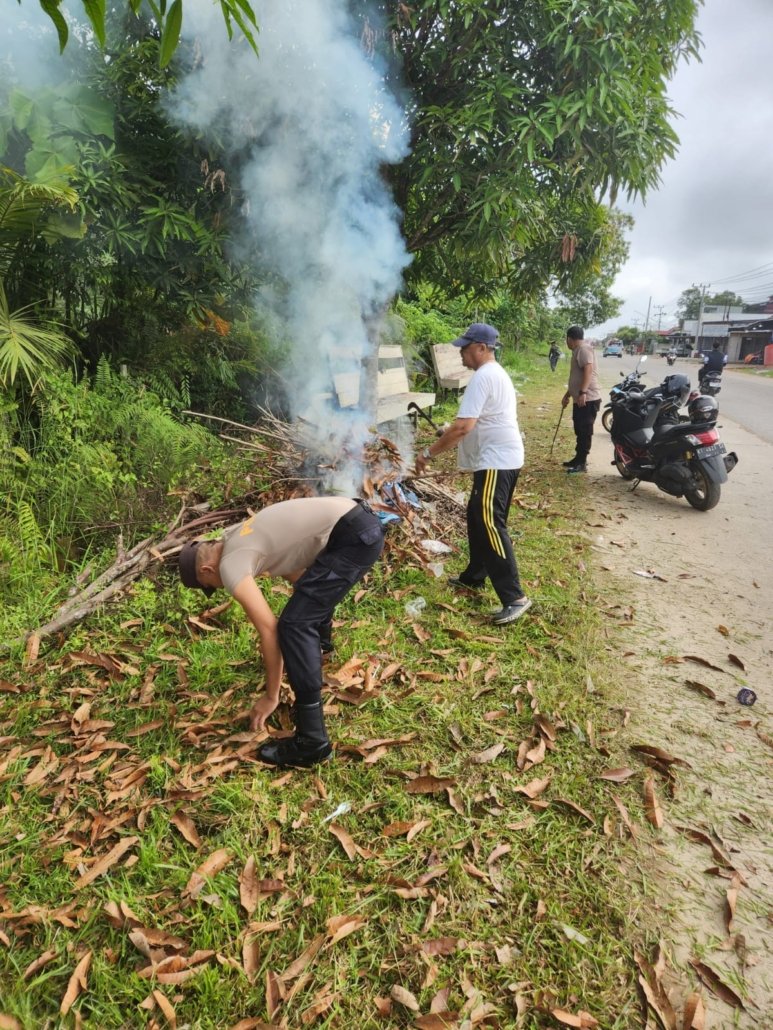 Gotong royong dilaksanakan sebagai wujud sinergi antara pemerintah desa, Polri, TNI, dan masyarakat dalam menjaga kebersihan lingkungan sekaligus mempererat tali silaturahmi antarinstansi dan warga.
