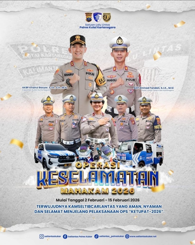 Kutai Kartanegara – Satuan Lalu Lintas (Satlantas) Polres Kutai Kartanegara akan menggelar Operasi Keselamatan Mahakam 2026 yang dilaksanakan selama 14 hari, terhitung mulai 2 Februari hingga 15 Februari 2026.