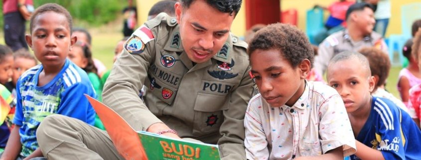 Personel Ops Damai Cartenz 2026 Hadirkan Keceriaan Lewat Belajar dan Bermain Bersama Anak Taman Baca Koya Tengah