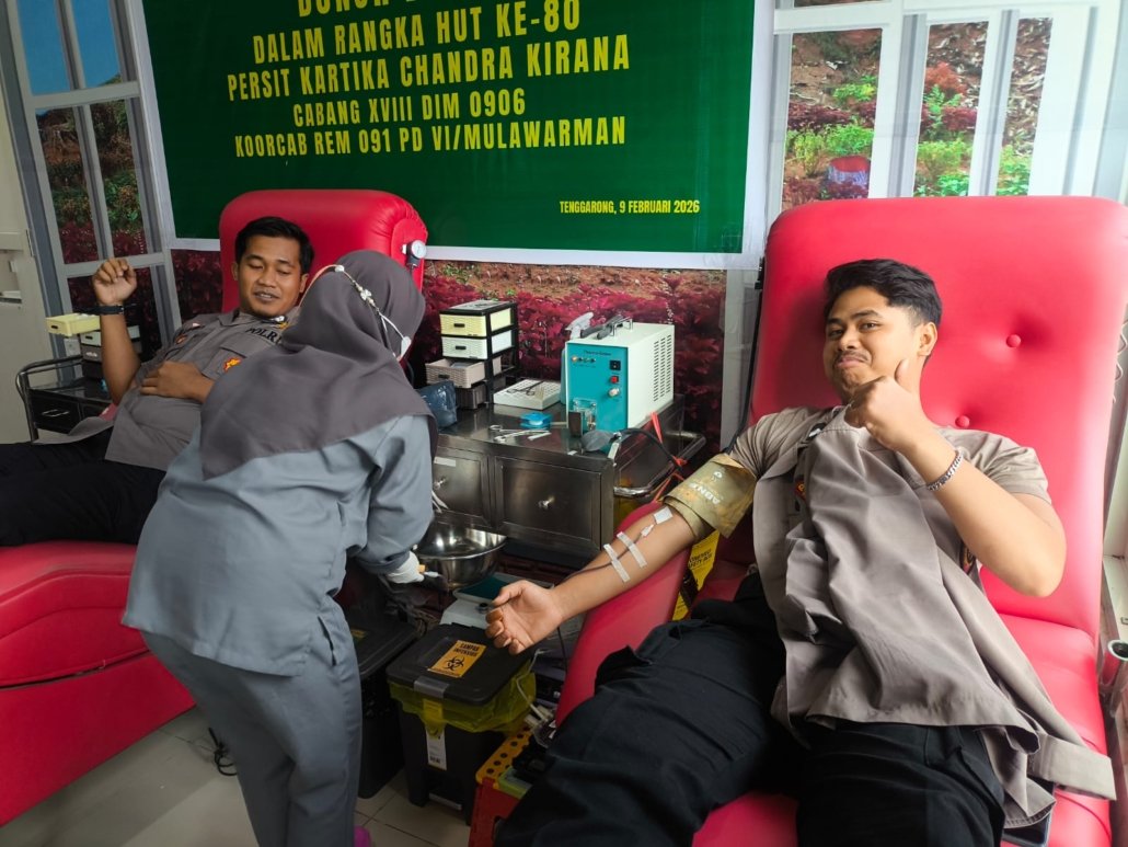 Kukar – Kepedulian terhadap sesama kembali ditunjukkan jajaran Kepolisian Resor Kutai Kartanegara. Anggota Satuan Samapta Polres Kutai Kartanegara turut berpartisipasi dalam kegiatan donor darah dalam rangka memperingati Hari Ulang Tahun ke-80 Persit Kartika Chandra Kirana Tahun 2026, yang dilaksanakan di Kantor Palang Merah Indonesia (PMI) Kabupaten Kutai Kartanegara, Senin (9/2/2026).